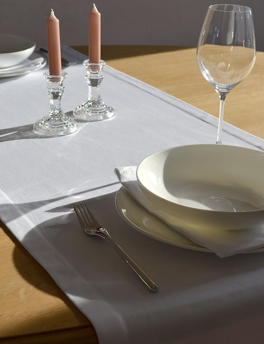 Cosiness, being with friends and an atmosphere of warmth and love. The place where everything comes together and beautiful moments are created. That's what we all feel around the table at Christmas. This feeling and atmosphere comes full circle with a beautiful and inviting table setting. That feeling and atmosphere comes into its own with a beautiful and inviting table setting. From sparkling gold and silver tablecloths to traditional red, green and white table runners. Our collection of Christmas tablecloths and table linens is inspired by the latest Christmas trends and suitable for both the hospitality and private sectors. Give your table a sparkling look, keep it classic or go for a modern pure linen look.